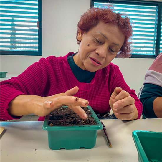Maggy, quien dirige el taller ofrecido por Ambient, destaca que los participantes aprenden no solo a sembrar y trasplantar, sino también a establecer camas de siembra, preparar la tierra y hacer composta. Esto les permite tener un huerto en casa o aprovechar los huertos en los centros comunitarios.