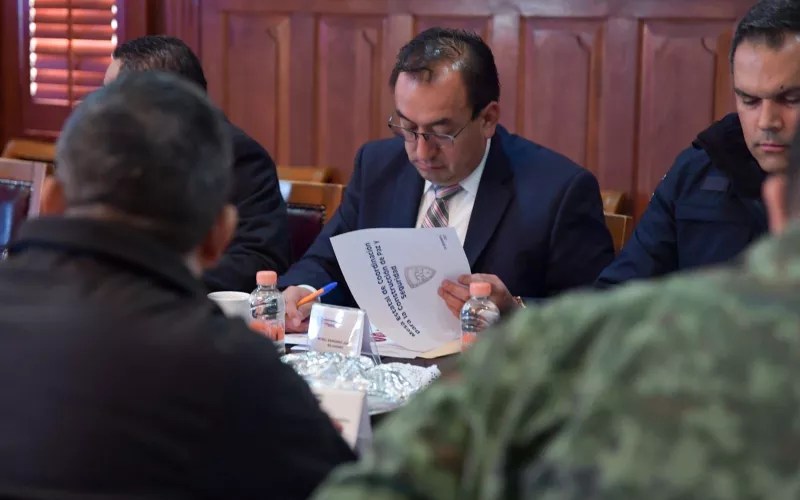 En la reunión estuvieron presentes el secretario general de Gobierno, Santiago de la Peña; el secretario de Seguridad Pública del Estado, Gilberto Loya; el fiscal general, César Jáuregui; así como los comandantes de la 5/a y 42/a Zona Militar, Saúl Luna Jaimes y Alejandro Silva Hernández, respectivamente.