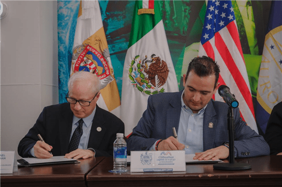 El alcalde de Chihuahua, Marco Bonilla, lideró la formalización del hermanamiento entre Chihuahua Capital y Aurora, en Colorado, Estados Unidos. El objetivo principal es intercambiar buenas prácticas, compartir políticas públicas y fortalecer vínculos para impulsar el desarrollo mutuo de ambas localidades.