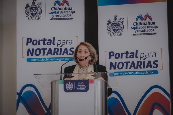 El alcalde de Chihuahua, Marco Bonilla Mendoza, lideró la presentación del nuevo Portal para Notarías creado por el Gobierno Municipal. El objetivo de esta iniciativa es ofrecer un servicio más ágil y eficiente a los notarios de la capital que llevan a cabo las Declaraciones de Pago del Impuesto de Traslación de Dominio.