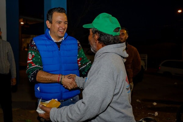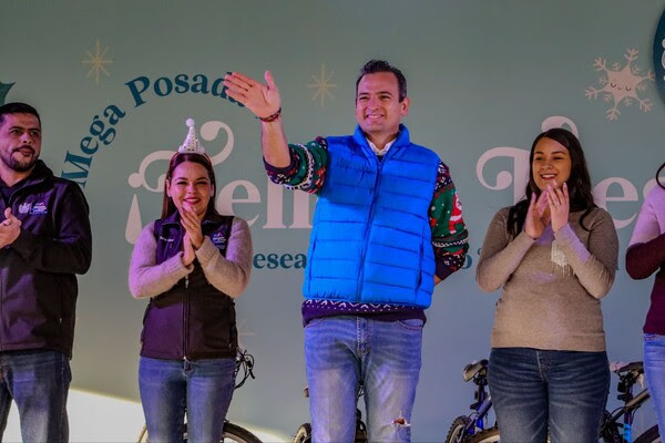 El alcalde de Chihuahua, Marco Bonilla, junto con la presidenta del DIF Municipal, Karina Olivas, compartieron momentos de alegría con las familias residentes cerca del Centro de Desarrollo Familiar (CEDEFAM) Valle Dorado durante una posada navideña.