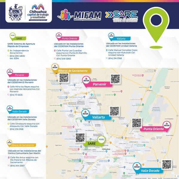 Actualmente, el Gobierno Municipal de Chihuahua dispone de cinco Módulos de Impulso a la Economía Familiar (MIFAM) distribuidos en las siguientes ubicaciones: