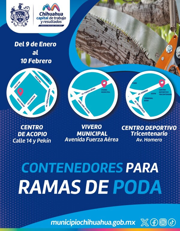 Es importante destacar que estos contenedores tienen el propósito exclusivo de recibir ramas provenientes de la poda, y se hace un llamado a la comunidad a abstenerse de depositar cualquier otro tipo de residuos. Esta medida busca facilitar la correcta gestión de los desechos verdes, promoviendo la sostenibilidad y la conservación del entorno urbano.