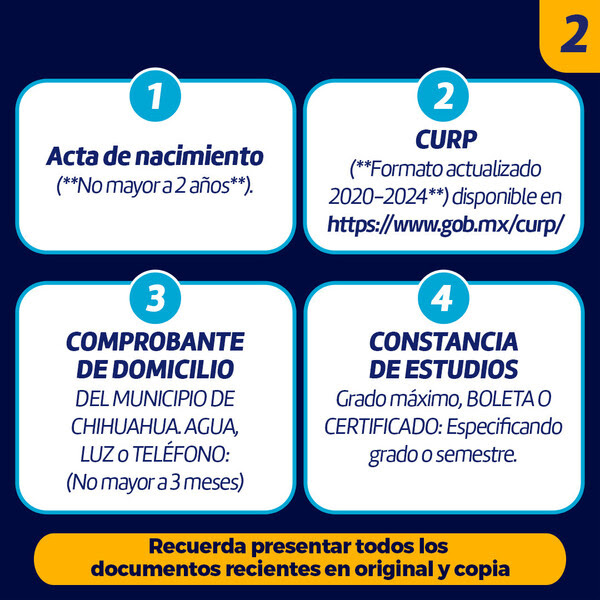 - Comprobante de domicilio en el municipio de Chihuahua (original y copia, no mayor a tres meses).