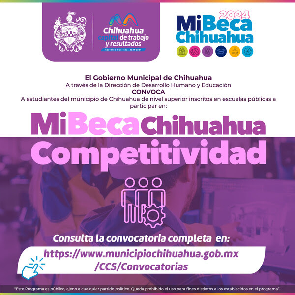 El Gobierno Municipal, a través de la Dirección de Desarrollo Humano y Educación, quiere recordar que hoy, 26 de enero, es el último día para presentar la documentación y participar en el programa «Mi Beca Chihuahua Competitividad».