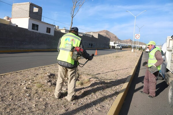El personal de esta entidad lleva a cabo actividades como limpieza, corte de hierba, recolección de papeles, rastrilleo y recogida de residuos en las avenidas que dan acceso a la colonia mencionada, situada al sureste de la ciudad.