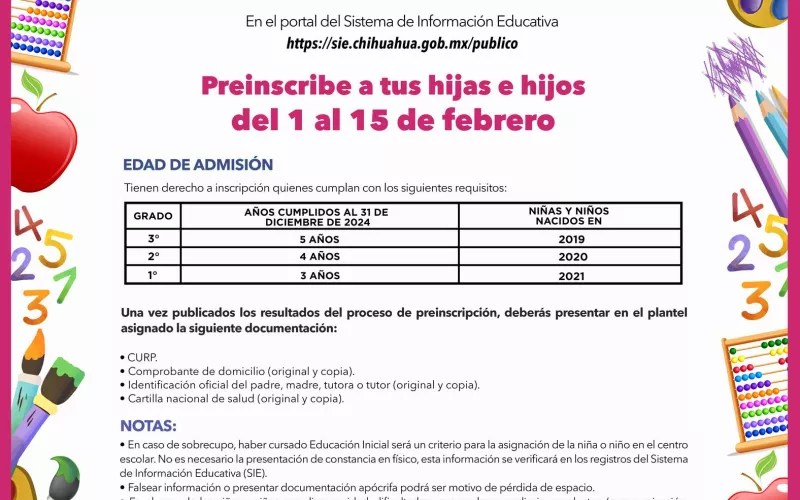La Secretaría de Educación y Deporte (SEyD) ha comenzado el periodo de preinscripción para estudiantes que ingresan por primera vez a los niveles Inicial, Preescolar, Primaria y Secundaria durante el ciclo escolar 2024-2025. Este proceso se lleva a cabo a través de la plataforma digital del Sistema de Información Educativa (SIE).