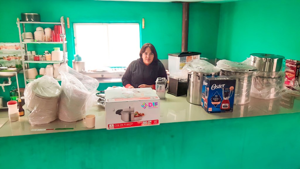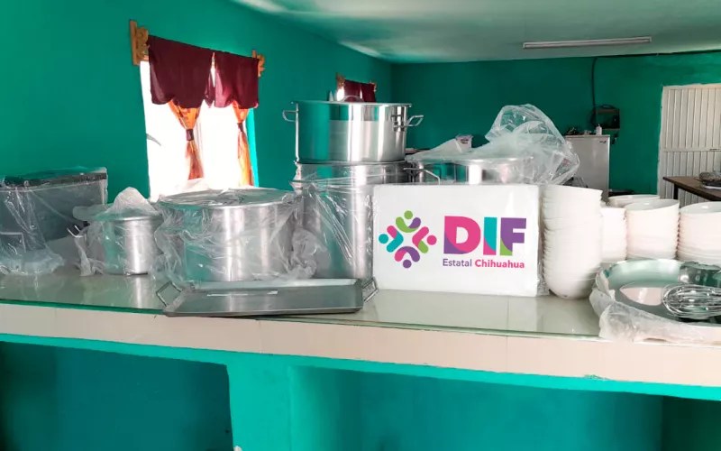 El DIF Estatal, a través de la Dirección de Alimentación y Desarrollo Comunitario, proporcionó utensilios de cocina y equipamiento diverso a la escuela Lázaro Cárdenas, ubicada en la comunidad de El Cuervo, en el municipio de Batopilas.