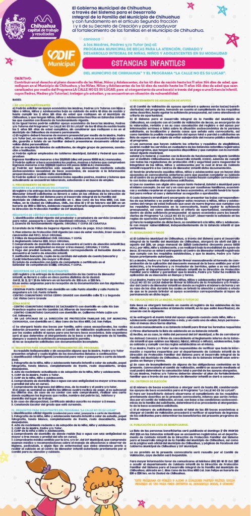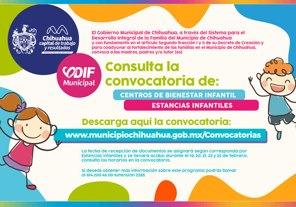 El Gobierno Municipal de Chihuahua, a través del DIF Municipal, ha lanzado la convocatoria para el Programa Municipal de Becas destinado a la Atención, Cuidado y Desarrollo Integral de Niñas, Niños y Adolescentes en las modalidades de Estancias Infantiles y Centros de Bienestar Infantil.