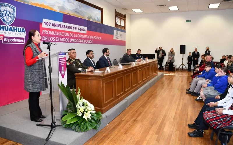En conmemoración del 107 Aniversario de la Promulgación de la Constitución Política de los Estados Unidos Mexicanos, la Secretaría de Educación y Deporte (SEyD) organizó una ceremonia cívica en el Salón Sacramento de Palacio de Gobierno. Durante el evento, los estudiantes de quinto grado de la Primaria Federal «Miguel Ahumada» y la Primaria Estatal «Porfirio Parra» juraron lealtad a la Carta Magna.
