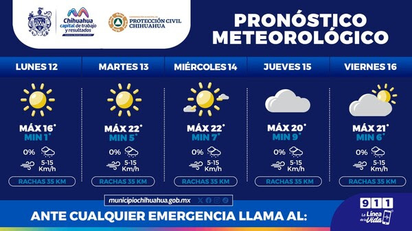La Coordinación Municipal de Protección Civil advierte sobre la persistencia de días frescos durante esta semana del 12 al 16 de febrero, con temperaturas mínimas de hasta 1°C. Se hace un llamado a mantener las precauciones para prevenir enfermedades respiratorias.
