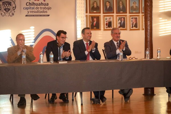 En el salón 12 de Octubre de la Presidencia Municipal, el alcalde Marco Bonilla y miembros del Fideicomiso del Centro Urbano e Histórico de la Ciudad de Chihuahua (CUHCUU) felicitaron a Patricio Martínez, ex gobernador de Chihuahua, quien a partir de hoy asumirá la presidencia de esta asociación.