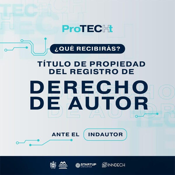 Al finalizar el programa, los participantes recibirán su Título de Propiedad del registro de Derecho de Autor ante el INDAUTOR, lo que les otorgará reconocimiento oficial sobre la titularidad de su desarrollo tecnológico, facilitando su formalidad, explotación y licenciamiento.