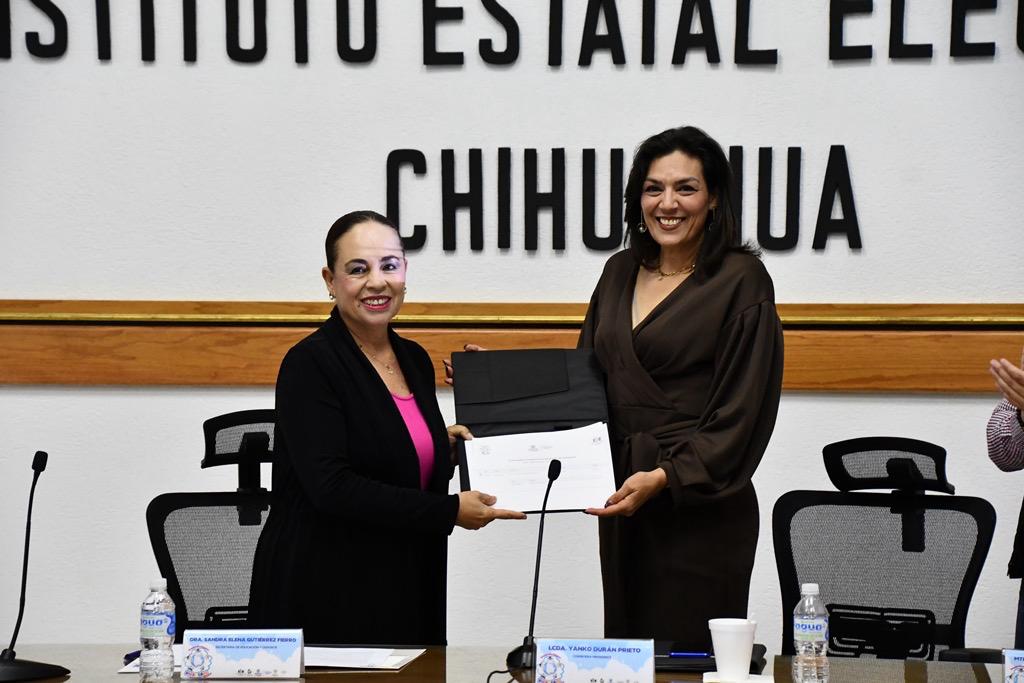 La ceremonia tuvo lugar en las instalaciones del IEE y fue dirigida por Sandra Elena Gutiérrez Fierro, titular de la SEyD, quien agradeció al IEE por su apoyo en el proceso.