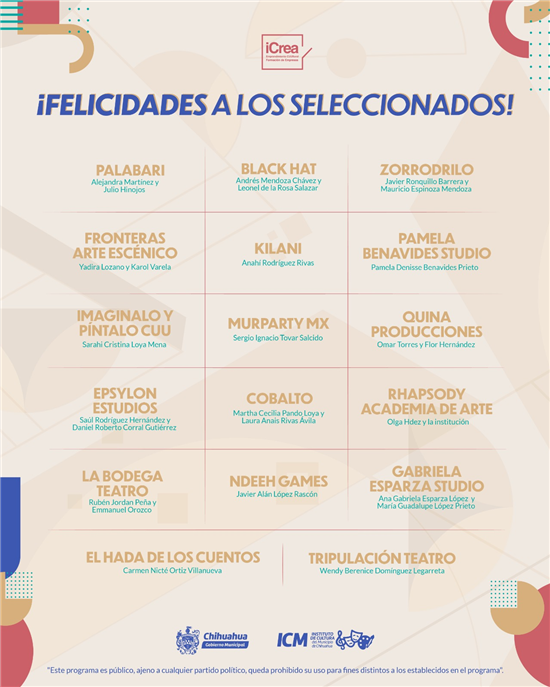 El Gobierno Municipal de Chihuahua, a través del Instituto de Cultura del Municipio, ha revelado a los afortunados seleccionados de la convocatoria «iCrea Emprendimiento Cultural/Formación de Empresas». Este programa busca apoyar y fomentar proyectos de emprendimiento en áreas culturales, creativas y artísticas en la región.