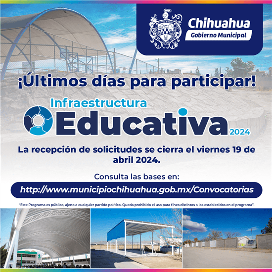 Se invita a todas las instituciones públicas y por cooperación de educación básica y media superior del Municipio de Chihuahua con necesidades de mejora en su infraestructura a participar activamente en esta iniciativa.