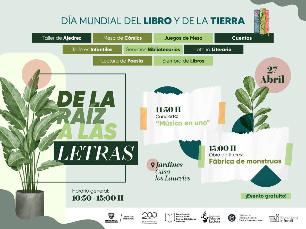 Este sábado 27 de abril, los jardines de Casa los Laureles serán el escenario de una festividad especial llamada «De la Raíz a las Letras». Organizada por la Secretaría de Cultura, a través del departamento de Bibliotecas y Fomento a la Lectura, esta actividad celebra tanto el Día Mundial del Libro como el Día de la Madre Tierra.