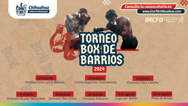 El Instituto Municipal de Cultura Física y Deporte, dirigido por Juan Abdo Fierro, ha lanzado la convocatoria para el Torneo de Box de Barrios edición 2024 en Chihuahua. La invitación está abierta hasta el 10 de junio para todos los gimnasios municipales, clubes y otros municipios del estado.