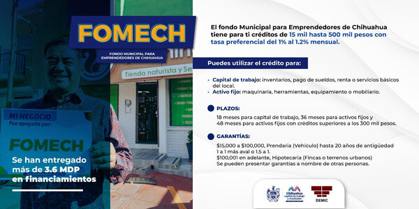 El Gobierno Municipal hace un llamado a todos los emprendedores interesados a participar en el programa FOMECH, destacando su compromiso con el desarrollo económico y la creación de oportunidades en la Capital de Chihuahua.