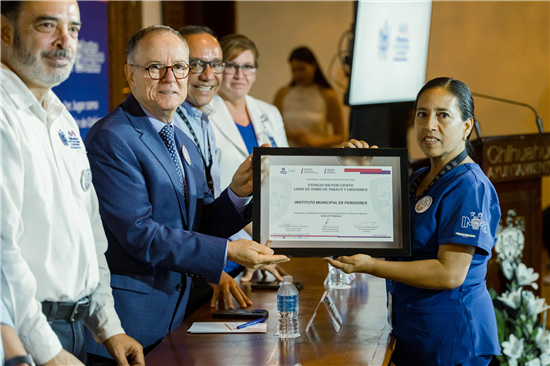 El alcalde Jorge Cruz recibió de manos de Juan Antonio González, director del Instituto Municipal de Pensiones (IMPE), las certificaciones que confirman la calidad y calidez del servicio de esta institución. El IMPE ha sido reconocido como la mejor institución gubernamental en México por Great Place to Work.