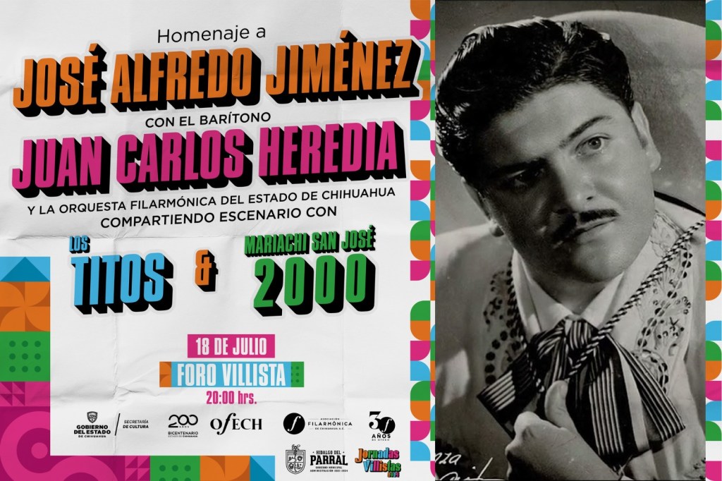 La Secretaría de Cultura de Chihuahua ha organizado un concierto especial en honor a José Alfredo Jiménez, en el marco de las Jornadas Villistas. El evento se llevará a cabo el jueves 18 de julio a las 20:00 horas en el Foro Villista de la ciudad de Parral.