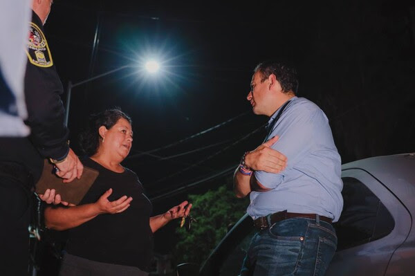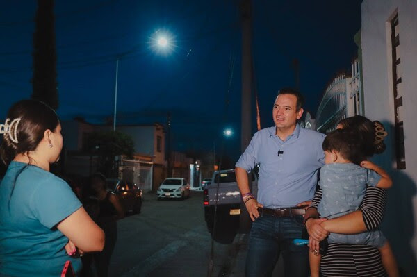 El lunes por la noche, el alcalde Marco Bonilla visitó la colonia Girasoles para verificar el funcionamiento de las nuevas lámparas LED instaladas por el Gobierno Municipal. Aprovechó la ocasión para hablar con los vecinos sobre temas de seguridad y servicios públicos.
