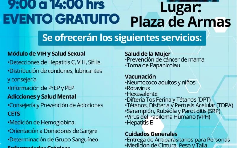 Con motivo del Día Mundial contra la Hepatitis, que se conmemora el 28 de julio, la Secretaría de Salud llevará a cabo una Feria de Salud en la Plaza de Armas de Chihuahua el próximo 3 de agosto. Este evento, organizado por el Centro Ambulatorio para la Prevención y Atención al SIDA e Infecciones de Transmisión Sexual (Capasits), ofrecerá diversos servicios de salud a la comunidad.