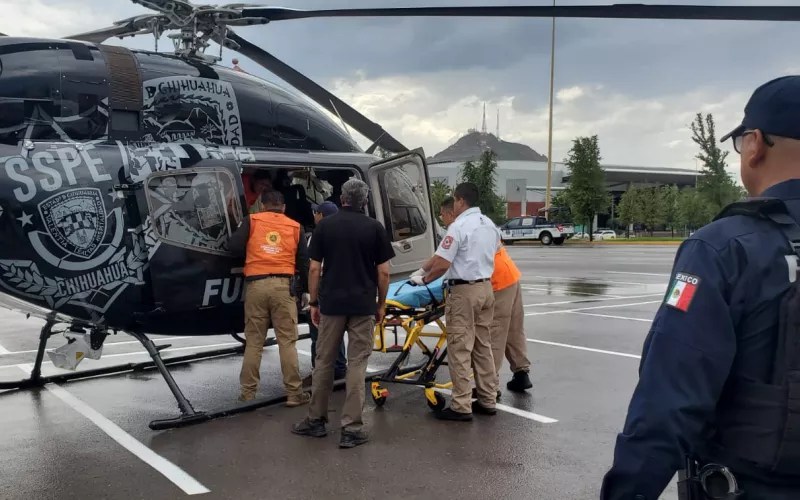 El personal de la Unidad de Rescate del Gobierno del Estado (URGE) se encargó del traslado terrestre del joven desde el Centro de Convenciones de Chihuahua hasta el hospital.