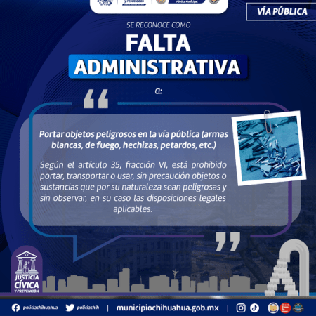Seguridad Pública advierte sobre portar objetos peligrosos en la vía pública