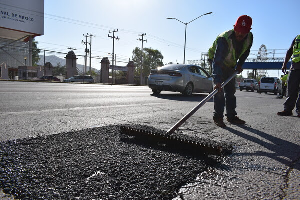 Las cuadrillas del Departamento de Mantenimiento Vial trabajaron en calles de la Zona Centro y en colonias como Arboledas, Infonavit Nacional, Granjas, Tierra y Libertad, Revolución, Minerales, y en fraccionamientos como Los Olivos, Los Nogales, Campestre y Los Arcos.