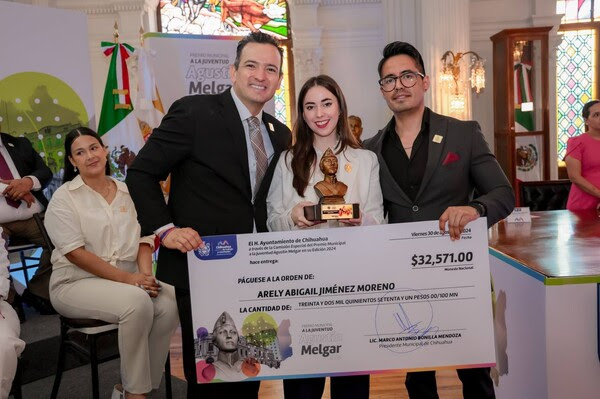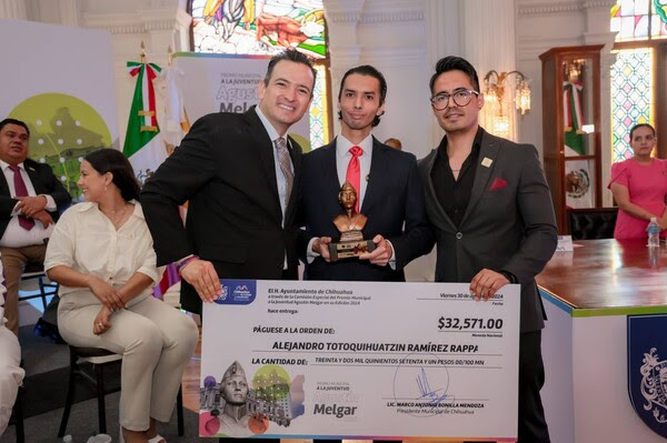 El Ayuntamiento de Chihuahua reconoció a 12 jóvenes destacados con el “Premio Municipal a la Juventud Agustín Melgar” en una sesión solemne de Cabildo. El alcalde Marco Bonilla, junto con los regidores, entregó los galardones que reconocen el trabajo de los jóvenes en áreas como educación, arte, labor social, ecología, civismo y actividades productivas.