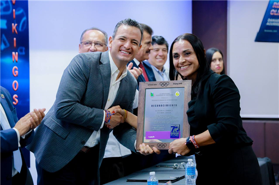 El alcalde Marco Bonilla felicitó a los deportistas y entrenadores que recibieron el “Premio del Deporte Vikingo”, entregado a egresados de la Facultad de Ciencias de la Cultura Física de la Universidad Autónoma de Chihuahua (UACH) que han destacado a nivel nacional e internacional.