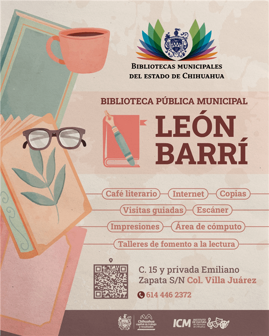 La Biblioteca León Barrí está ubicada en Calle 15 y Privada Emiliano Zapata S/N, colonia Villa Juárez. Para más información, puedes llamar al teléfono 614 446 2372 o visitar las redes sociales del Instituto de Cultura y del Gobierno Municipal.