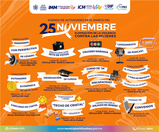 El Gobierno Municipal presentó una agenda de actividades para conmemorar el 25 de noviembre, Día Internacional de la Eliminación de la Violencia contra las Mujeres. Estas acciones, organizadas por el Instituto Municipal de las Mujeres (IMM), el DIF Municipal, el Instituto de Cultura y el Instituto Municipal de Prevención y Atención a la Salud (IMPAS), buscan promover la sensibilización y erradicación de la violencia de género.