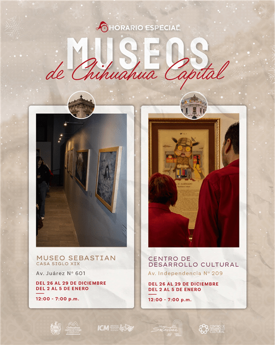 El Instituto de Cultura del Municipio de Chihuahua anunció que los museos municipales ajustarán su horario durante las próximas vacaciones para que familias, turistas y visitantes puedan disfrutar de sus exposiciones y actividades culturales.