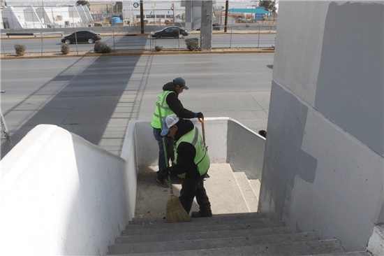 El Gobierno Municipal, a través de la Dirección de Servicios Públicos, realiza trabajos de limpieza en puentes peatonales ubicados en las principales avenidas de la ciudad para mejorar su imagen urbana.