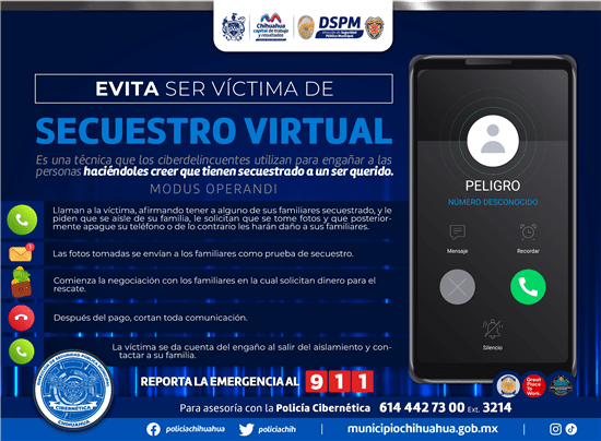 La Policía Cibernética de la Dirección de Seguridad Pública Municipal (DSPM) alertó a la población sobre los llamados «secuestros virtuales», una forma de extorsión telefónica en la que delincuentes buscan obtener dinero o información personal mediante engaños.
