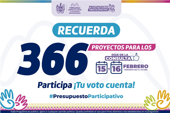 Inicia la votación para elegir los proyectos del Presupuesto Participativo 2025 en Chihuahua. La ciudadanía puede seleccionar hasta cinco propuestas este 15 y 16 de febrero, priorizando mejoras en educación, parques y vialidades.