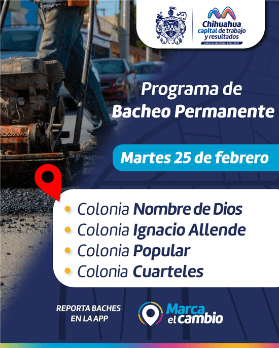 Las autoridades invitan a la ciudadanía a reportar baches a través de la aplicación Marca el Cambio o comunicándose al 072, además de tomar precauciones en las zonas de trabajo.
