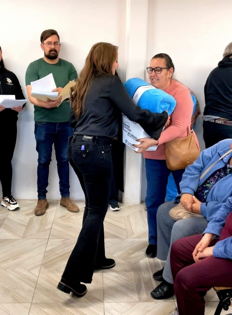 Durante su visita, la diputada agradeció el apoyo de la gobernadora Maru Campos con relación a las gestiones que le ha solicitado, pues siempre ha tenido una grata respuesta, es por ello que se hizo la entrega de apoyos alimentarios con productos de la canasta básica y cobijas para los adultos mayores.