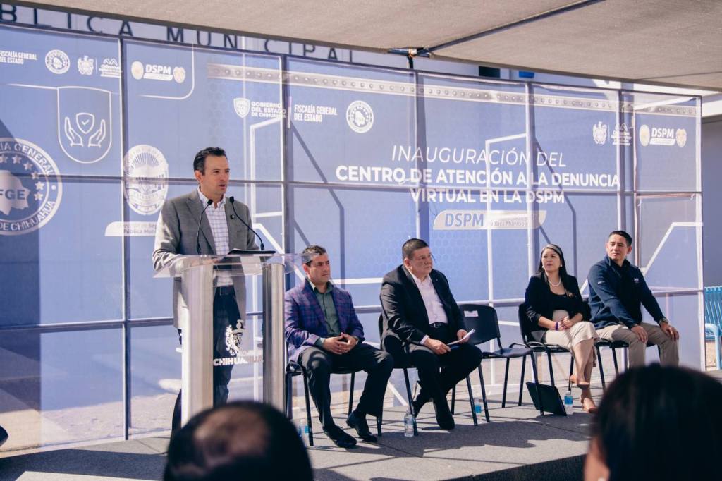 En su mensaje, el Alcalde señaló que Chihuahua Capital va a la vanguardia en la implementación de políticas públicas en materia de seguridad, por ello, en colaboración con la FGE se lanzó este módulo para realizar: video denuncias, denuncia empresarial, trámite de la constancia de antecedentes penales, extravíos de documentos y de placas, consulta de vehículos recuperados, consulta de teléfonos extorsionadores, entre otros.