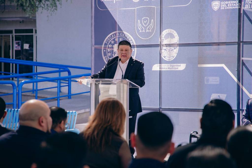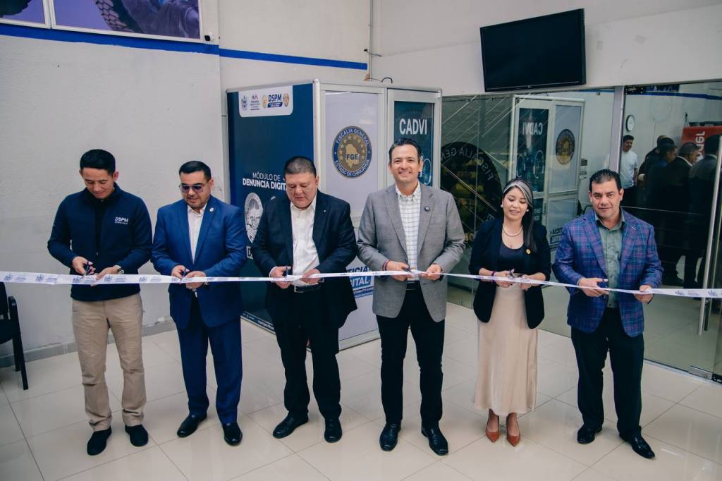Chihuahua, Chih., a 18 de marzo de 2025.- El alcalde Marco Bonilla junto al fiscal general del Estado, César Jáuregui, inauguraron el Centro de Atención a la Denuncia Virtual en la Comandancia Norte, el cual es un módulo para realizar denuncias ante el Ministerio Público.