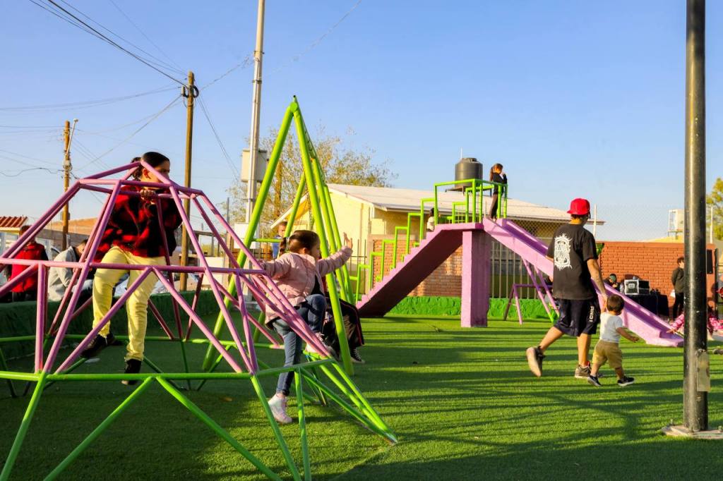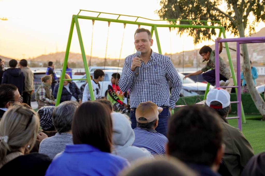 Chihuahua, Chih. A 21 de marzo de 2025.- Para beneficio de los vecinos de la colonia Arturo Gámiz, el Gobierno Municipal remodeló el parque de la zona, el cual fue entregado por el alcalde Marco Bonilla, en un evento donde además de las risas de las niñas y niños que disfrutaron de los juegos infantiles, también disfrutaron de la música en vivo para alegar la tarde.