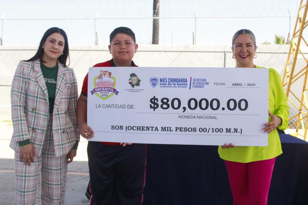 Díaz Reyes felicitó al niño Mateo Yunel Olivas Ávalos por haber sido seleccionado como Diputado Infantil en la edición 2025 del ejercicio de educación cívica y participación ciudadana organizado por el Instituto Estatal Electoral de Chihuahua.
