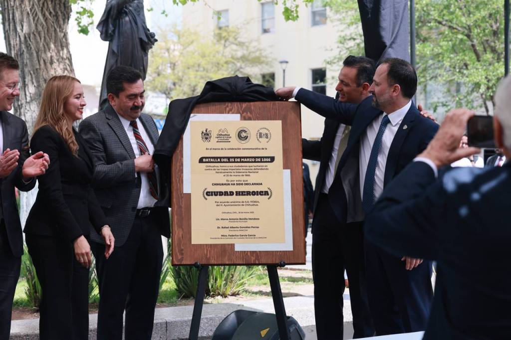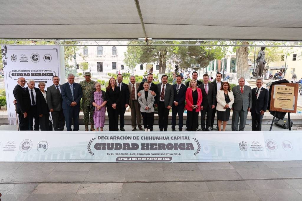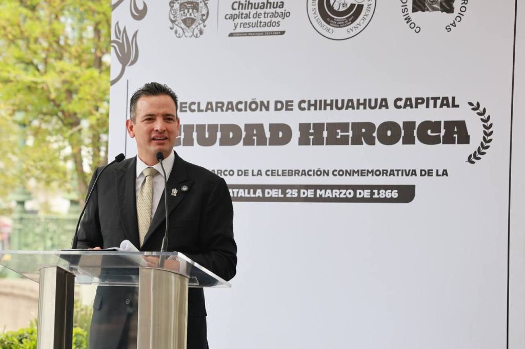 Chihuahua, Chih., a 26 de marzo de 2025.- El alcalde Marco Bonilla, anunció que oficialmente, el Gobierno Municipal formalizó la declaratoria de la ciudad de Chihuahua como “Heroica”, en reconocimiento a su papel fundamental en la historia de México y a la valentía de sus habitantes en distintos momentos clave para la defensa de la soberanía nacional.