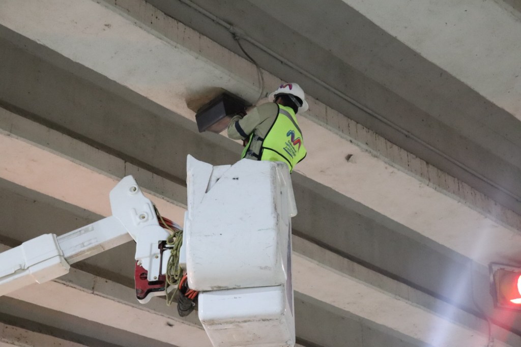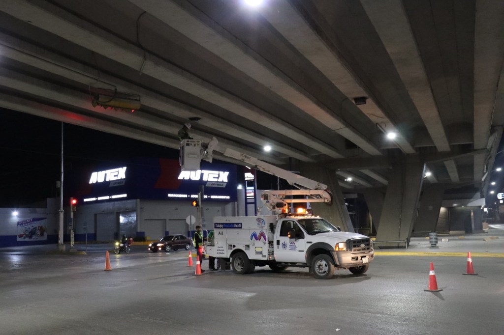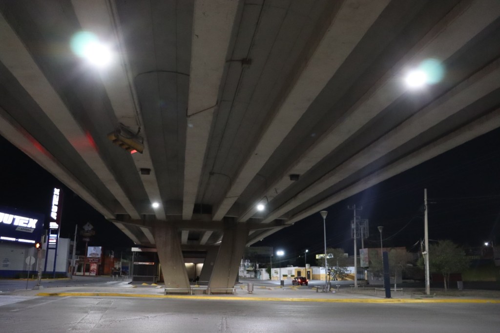 Chihuahua, Chih. A 27 de marzo de 2025.- El Gobierno Municipal, a través de la Dirección de Mantenimiento Urbano, modernizó el alumbrado público en cuatro bajo puentes estratégicos de la ciudad, con la sustitución de 74 luminarias viejas por las nuevas con tecnología LED de última generación, que iluminan mejor y ahorran energía.