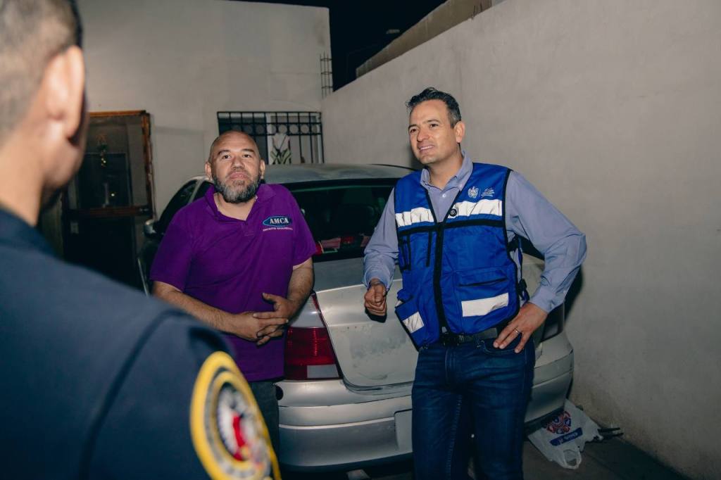 Chihuahua, Chih. A 28 de marzo de 2025.- Para comprobar el buen funcionamiento de las nuevas lámparas LED instaladas en la colonia Jardines del Sol, al norte de la ciudad, el alcalde Marco Bonilla realizó un recorrido de supervisión, además escuchó a los vecinos sobre las necesidades de seguridad y mejoras en los servicios públicos que ofrece el Gobierno Municipal.