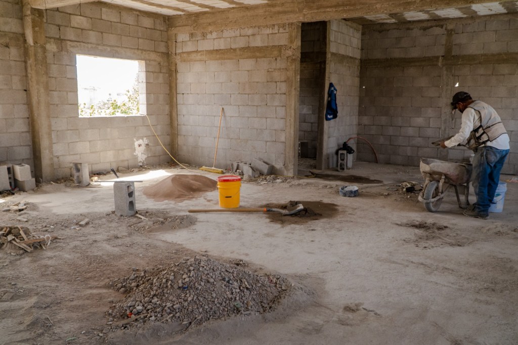 Hasta el momento, ya se han completado los trabajos de aplanado de los muros exteriores y el enyesado de la planta baja, se avanza en la instalación de las ventanas y las labores de instalación eléctrica y de sistemas hidrosanitarios siguen en proceso.