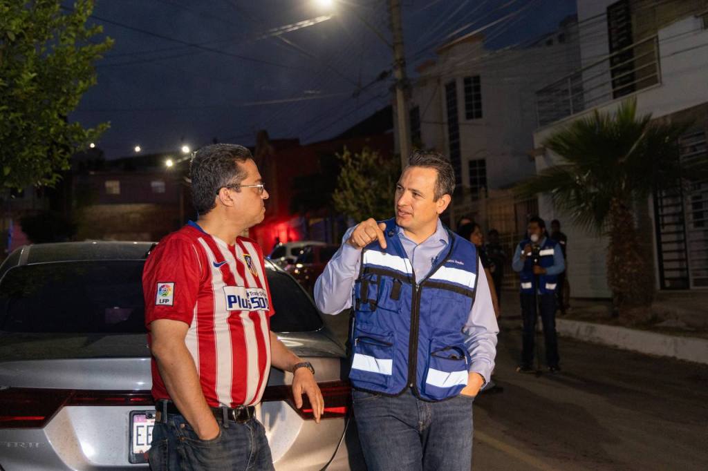 Durante el recorrido, lo acompañaron el director de Seguridad Pública Municipal, Julio César Salas, y el titular de Mantenimiento Urbano, Christian Medellín, quienes escucharon de primera mano las inquietudes de los vecinos.