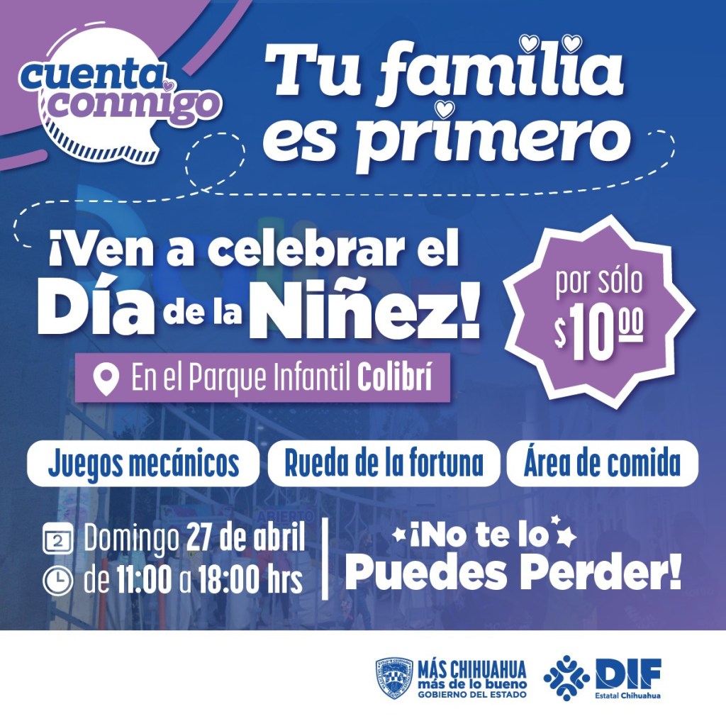 📍Chihuahua, Chih. — 21 de abril de 2025 — En el marco de la celebración del Día de la Niñez, el DIF Estatal invita a todas las familias chihuahuenses a disfrutar de una jornada llena de actividades culturales y recreativas este domingo 27 de abril, con dinámicas pensadas para niñas, niños y adultos.